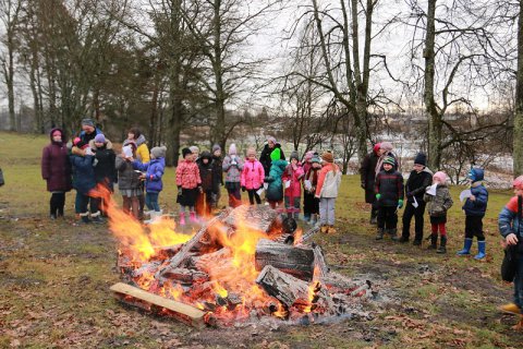 Pēc sarunām klasēs devāmies pie ugunskura vidusskolas pagalmā, lai, kopīgi klausoties un dziedot tā laika dziesmas, dzertu karstu tēju un kaut mazliet sajustu un izprastu Barikāžu laika emocionālo noskaņu. Tā kā janvāra sākumā, gatavojoties nozīmīgo notikumu atcerei, Staiceles vidusskolā bija Vēstures un politikas nedēļa, kurā 5. – 9. klašu audzēkņi parādīja savas zināšanas viktorīnā par dažādiem notikumiem Latvijā un pasaulē, tad labākos pie ugunskura direktore Sandra Brokāne un vēstures skolotāja Ilga Elste apbalvoja ar pateicībām.