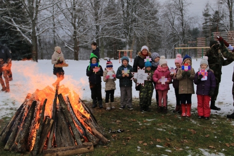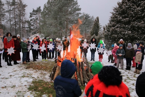 Pasākuma beigās skolas audzēkņi cienājās ar siltu tēju un cepumiem.